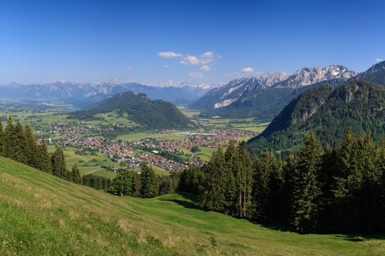 Zum Beispiel der kristallklare Alatsee, welcher oberhalb vom Weißensee, gelegen ist. Vom Hopfensee und Alpsee haben Sie einen herrlichen Blick auf die Allgäuer Alpen und die Schlösser von König Ludwig II.
